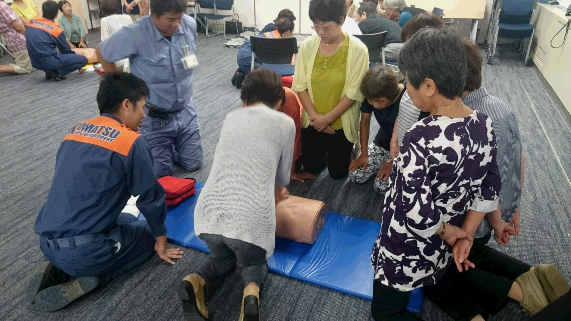 普通救命講習 (株)アドバンス北陸サービスでは、社員、清掃員全員に普通救命の講習を受けて、修了証を発行します。ただの清掃員ではなく、付加価値のある人間を育成しています。